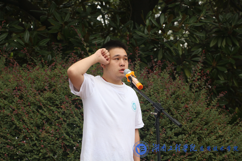 机械设计1681班李思佳和土木1681班朱威分别代表运动员和裁判员宣誓。