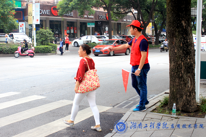 为全面配合湘潭市创文工作,引导行人“文明过马路”,9月18日至23日期间,我院学子组成的“文明志愿劝导队”在辖区人流量密集的学校附近开展了文明劝导活动。