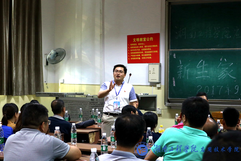 9月15日下午3:30,我院在南一教112教室举行了2017级新生家长会。我院领导对此次会议十分重视,院长李光中、党总支书记李爱国、党总支副书记徐粤宇、学生工作办公室主任刘红石及新生班主任老师参加此次会议,徐粤宇主持。
