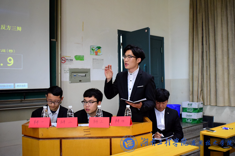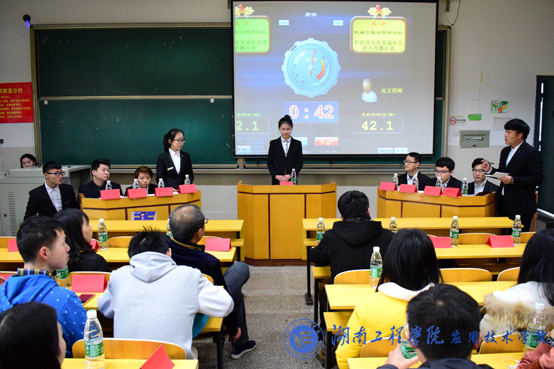 3月16日中午12:20,我院班级辩论赛在南校区第一教学楼313教室举行开幕表演赛。应用技术学院和机械工程学院的辩论队就“应不应该允许未成年人进入直播行业”展开辩论。评委为我院辅导员唐冰、孙传旺、蒋惠筠、曹时艳。