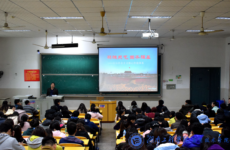 专题一为“凝魂聚气,固本强基——解读社会主义核心价值体系”,由胡武平主讲。他通过播放2014年的春晚小品《扶不扶》切入正题,引发起大家对社会道德问题的深入思考。社会主义核心价值体系作为社会主义意识形态的根本,是社会发展的稳定器和方向盘,是社会的灵魂,胡武平重点阐释了建设社会主义核心价值体系的社会背景,社会主义核心价值体系的基本内容和内在结构,建设社会主义核心价值体系中要正确处理好四个关系和主要途径。最后一起学习了央视的专题视频《道德失范怎么治理》。胡武平强调指出,大学生党员干部要发挥先锋模范作用,自觉地用马克思主义指导思想武装头脑,坚定中国特色社会主义道路的理想信念,用民族精神和时代精神去凝聚人心,做社会主义荣辱观的坚定倡导者和实践者。