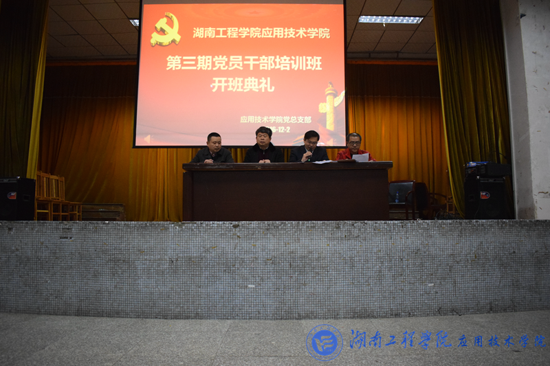12月2日晚上7:00,应用技术学院第三期学生党员和干部培训开班典礼在南校区第一教学楼四楼举行。院党总支书记李爱国、党总支副书记徐粤宇、学生工作办公室主任刘红石、团总支书记唐冰,及我院182名学生党员和学生干部参加。本次典礼由徐粤宇主持。