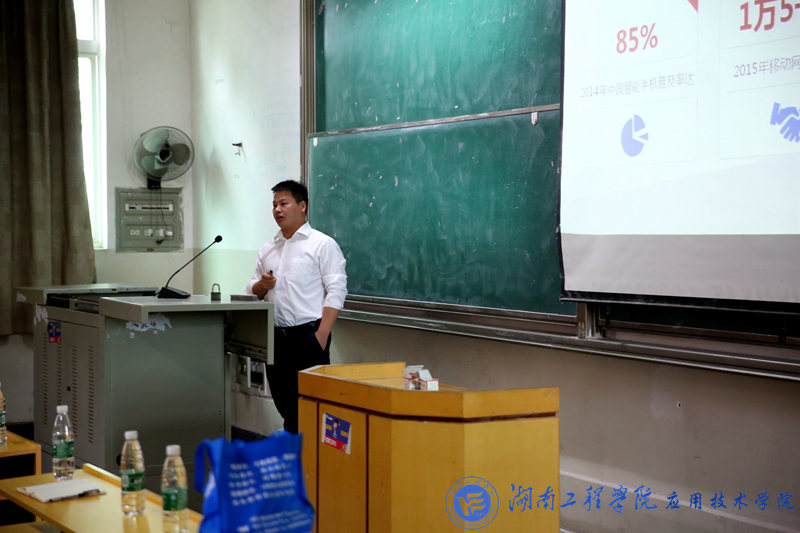 丁树凯通过讲述自身的经历和故事来阐述“如何从游戏研发角度学习计算机”这一主题。首先以一首许巍的《光明之门》作为铺垫,他谈到了自己的故事:在研发游戏的路程中,曾历尽坎坷,遇到过难题,但是他没有气馁,而是对问题进行了不同的尝试,最终在种种的尝试下找到了解决的办法。“曾经有个温暖的春天让我难忘 有一道门在我生命里敞开 让我第一次感到欣喜”, 《光明之门》中的这句歌词正是他当时心情的写照。在讲座中他谈到了软件开发中必不可少的“代码”。而在说及对“代码”的感受时,他的目光瞬间炽热,说道:“代码可以给你带来成就感和幸福感,它是一切美好名词的代言,你也可以通过它找到写程序本身的乐趣及从事这个职业的内心驱动力”,他鼓励同学们要喜爱自己的工作,这样才能从工作中收获幸福感和成就感。其后,在与现场同学的互动过程中他谈到了VR(Virtual Reality)-虚拟现实,并且分析和预测了VR在以后的发展趋势。