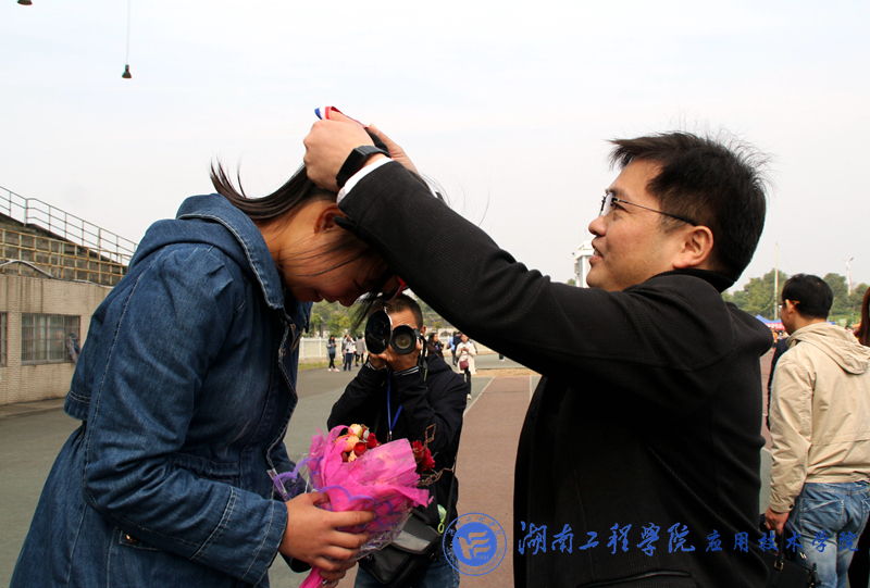 伴随着进行曲的奏响,参赛选手们热身、试跳,个个摩拳擦掌毫不示弱,这气氛让人紧张又激动。跳远沙坑的两侧围绕着的拉拉队员,使欢呼声加油声围绕着这个比赛场地,也给了选手们更大的信心。我院选手龚婷与刘珊以十分优秀的成绩从预赛中脱颖而出。龚婷个头不高,但小小的身躯里蕴含着超强的爆发力。一段稳健的助跑之后,一、二、三,她身体前倾,腾空跃起。伴随着此起彼伏的惊呼声,她以9.13米的优异成绩夺取了冠军。赛她表示,以前高中的经历给予她良好的基础,让她即使有点小紧张也能发挥得如此好,同时拿到这个名次她很兴奋,也很满意这次的成绩,希望下次取得更加优异的成绩。