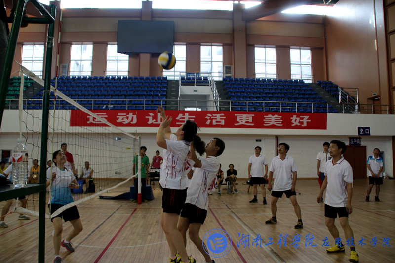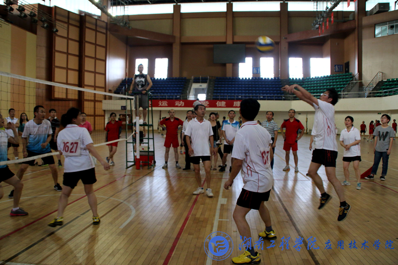 随着一声哨响,我院首先发球,激烈的赛势就此展开。一个个精彩的扣球、拦网,双方队员都充分发挥出自己的个人技术及战术配合,拉开三局精彩的持续赛,令在场观众欢呼不已,我院凭着紧凑的节奏、交替阵线严防死守,最终以18:12拿下首轮比赛。经过短暂的休息调整,双方交换场地再战。下半场比赛体力明显下滑,在连失几球后徐粤宇及时调停,军师出马商议战略,重新出发后果然不同凡响,头球便得分,我院精湛的吊球技术令对方频频失球,而机械学院也不甘落后,他们一次次精彩的拦球也让我院倍感压力。每赢一球都有场下的观众鼓掌加油,赛场上一派“参与运动,享受运动”的景象。唐冰作为我院排球队的中流砥柱,不但始终守住网前阵地,更不断为其他老师打气加油。然而最终没抵挡得住对方强烈攻势,我院以4分之差遗憾落败。对于对手的优秀表现,我院运动员表示确有很多值得学习的地方。