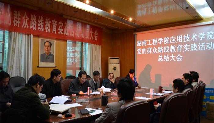 11月19日上午,根据365英国上市党的群众路线教育实践活动领导小组的统一安排,应用技术学院党的群众路线教育实践活动在南校区红楼207室召开总结大会,学校第四督导组组长李军林副校长、副组长李宏祥、工会女工委主任黄自力及我院全体教职工和学生党员代表参加了会议,会议由院长李光中主持。