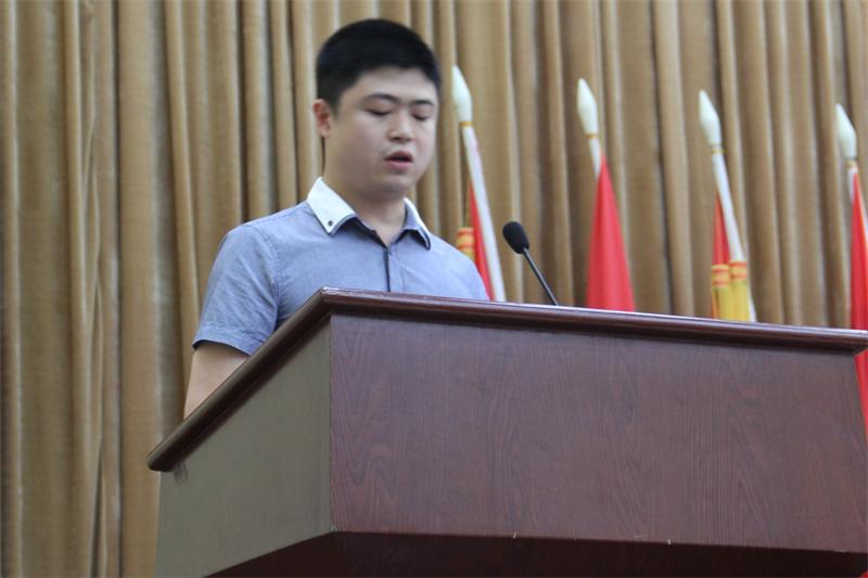 毕业典礼上,辅导员王尔奇老师、电气专业的王全同学、会计专业的蒋悦欣分别代表教师、毕业生和在校学生发言。