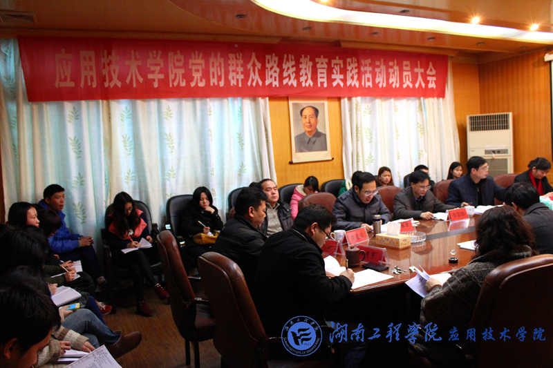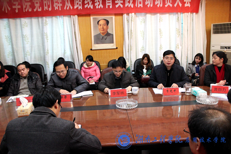 3月11日16:00,应用技术学院党总支召开党的群众路线教育实践活动动员大会。学院全体教职工和学生党员代表参加大会,副校长李军林率第四督导组出席动员大会并讲话。院长李光中主持会议。