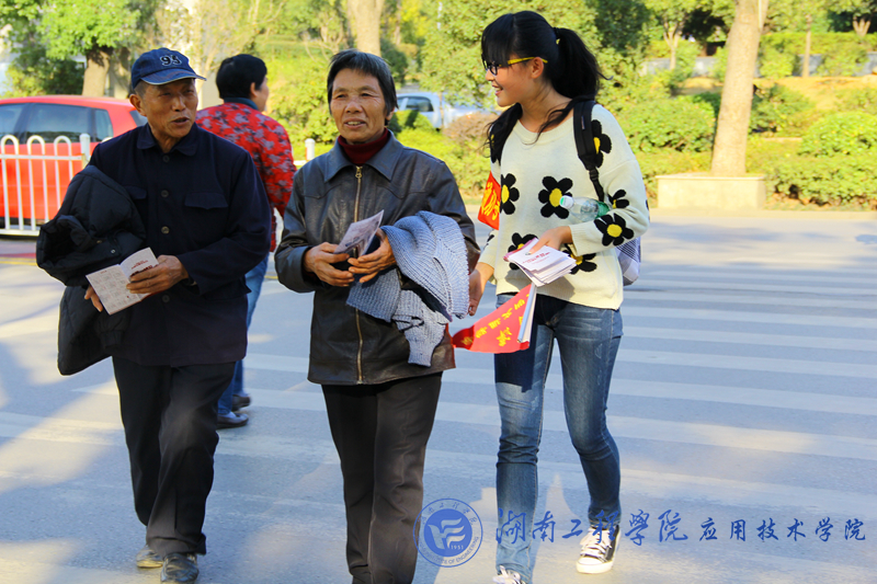 “您好,现在行驶车辆过多,请等会儿过马路吧。”“叔叔,请走斑马线!”我院志愿者们在街上耐心地劝导着违反交通规则的行人,礼貌地将手中的安全手册递给正在等待上车的乘客,乘客们微笑的接下,并仔细阅读。12月2日,是全国交通安全日,应用技术学院的50名志愿者在岳塘区交警队的指挥下,分别来到建设路口和板塘铺,宣传交通安全知识,宣传“摒弃交通陋习,安全文明出行”。
