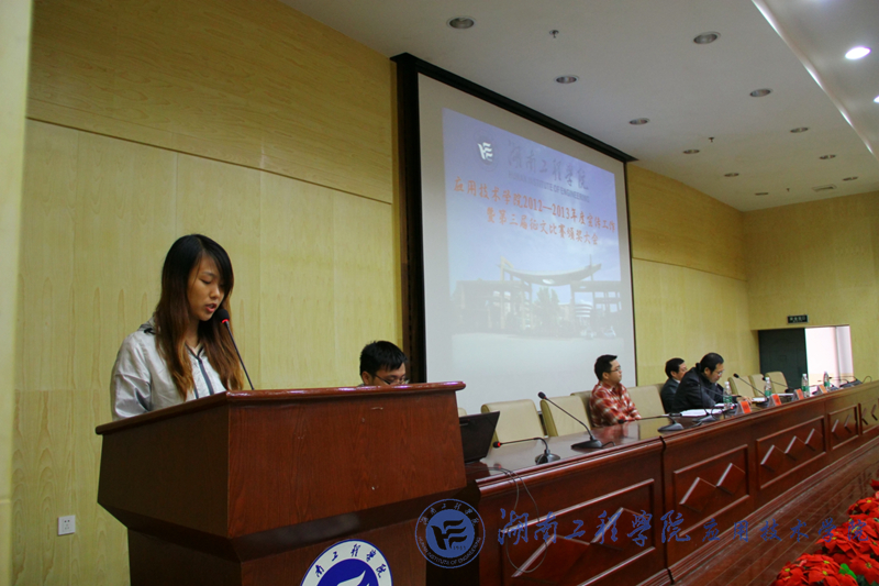 11月13日,我院2012-2013学年宣传工作暨第三届征文大赛颁奖大会在主校区图书馆第二报告厅举行。出席本次大会的有我院党总支书记彭栋梁、副院长胡武平、党总支副书记徐粤宇、学生工作办公室主任刘红石、新闻通讯社指导老师员陈欢。新闻通讯社全体成员参加大会,大会由记者团副主任龙森斌主持。