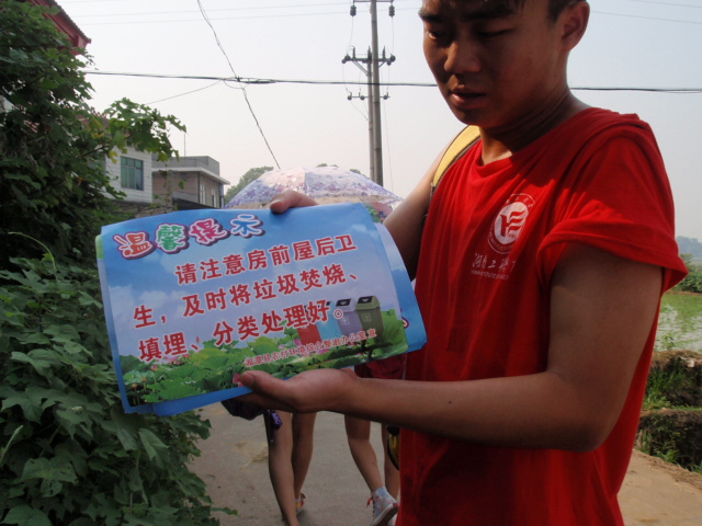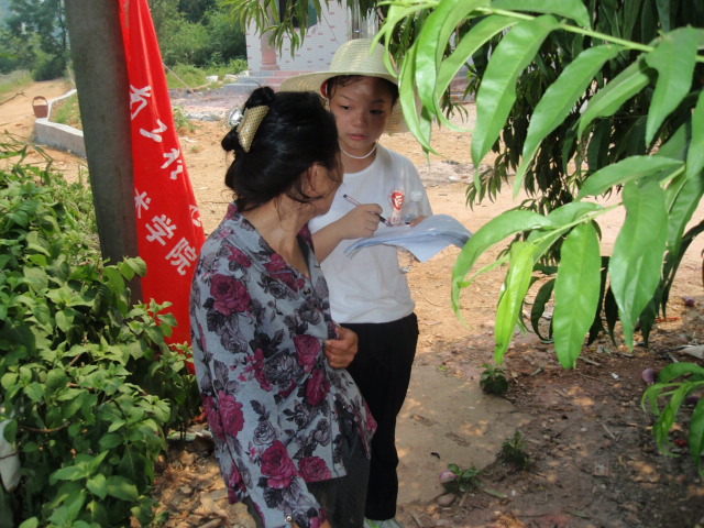 7月13日上午8:00,我院“三下乡”服务团冒着炎炎烈日,在领队老师陈欢的带领下步行4公里对云湖桥镇石井铺村展开了有关环境保护的问卷调查。20名服务团成员分成两大组行动,分别进行问卷发放、收回和标语的粘贴与宣传资料的发送。此次调查的目的是为了掌握当地民众对环境保护的认识、了解和关注程度,从而更有效的协助当地政府进行环境整治,改善生态环境,实现人与自然的和谐。