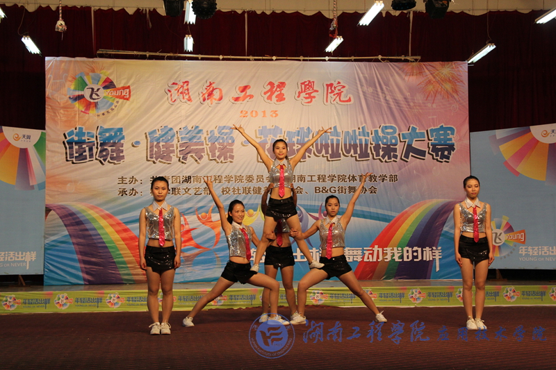 比赛在紧张的氛围中开始了,首先是健美操比赛,我院选手以饱满的精神面貌、独特新颖的舞蹈设计和整齐默契的团队配合,在即使是同样的舞蹈动作也跳出了不一样的风格,赢得了在场观众的一阵阵欢呼与喝彩。然后在花球啦啦操比赛中我院健儿们娴熟的动作、优美的舞姿,将啦啦操的动感、美感、舞感、乐感展现得淋漓尽致。在最后进行的是街舞比赛中,翻滚、跳跃、倒立、旋转,凭着高技巧和爆发力强劲的街舞动作,我院选手更是获得了评委老师的一致好评。