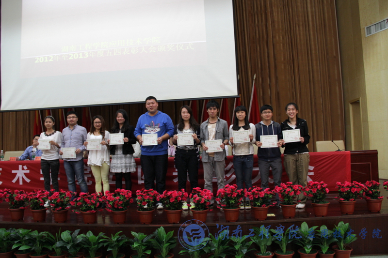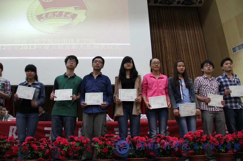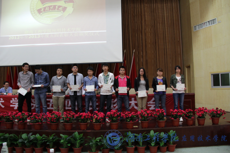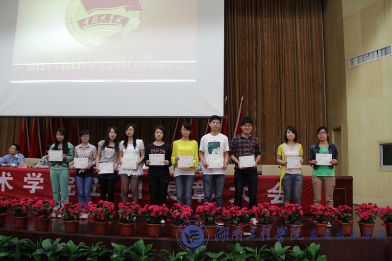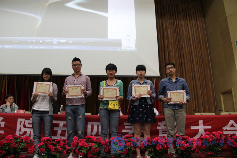 彭栋梁在会上宣读了我院2012-2013学年荣获“五四红旗支部”、“十佳大学生”、“十佳学生干部”、“十佳学生干事”、“十佳感恩社社员”以及“优秀共青团干”、“优秀共青团员”等光荣称号的先进集体和个人,希望获奖的班级和个人继续努力,更进一步推进学风建设,再创佳绩。