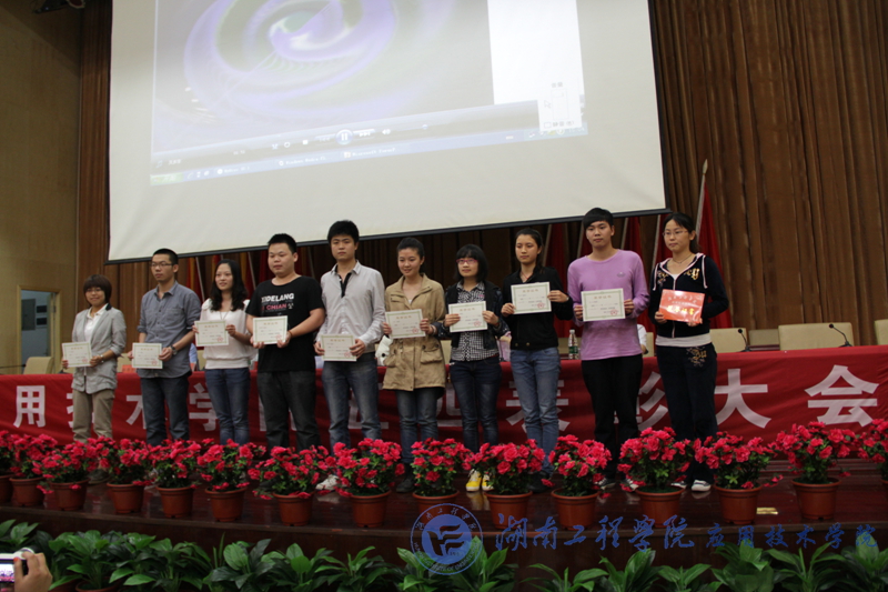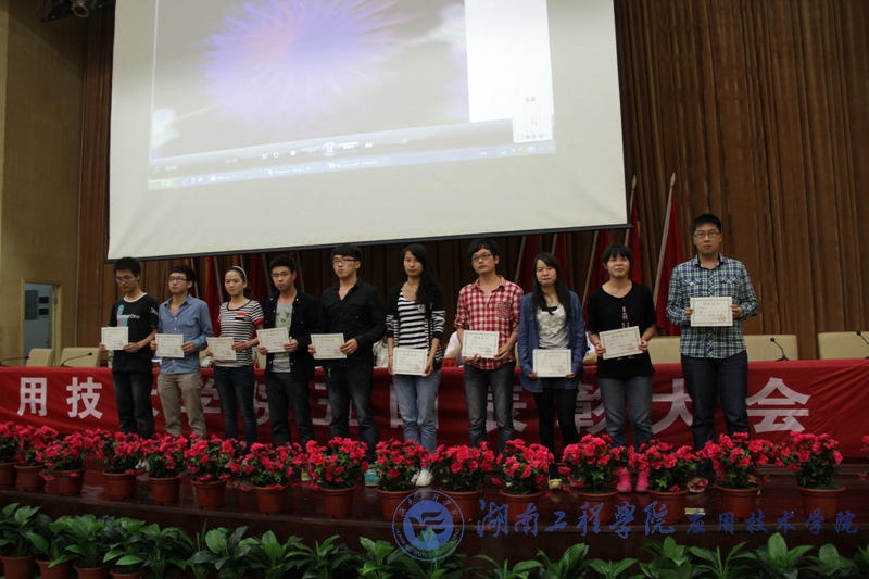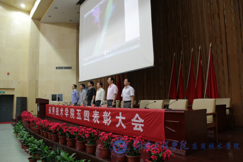 5月10日下午,应用技术学院2012-2013年度“五四”表彰大会在图书馆第一报告大厅隆重举行。副校长刘建强出席了本次大会,应用技术学院院长李光中、院党总支书记彭栋梁、副院长梁开健、胡武平和党总支副书记徐粤宇以及获奖学生参加大会。大会由李光中主持。