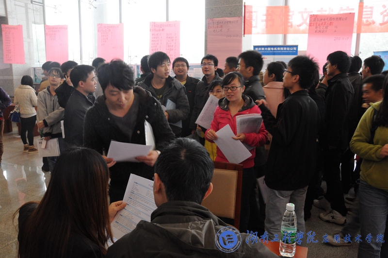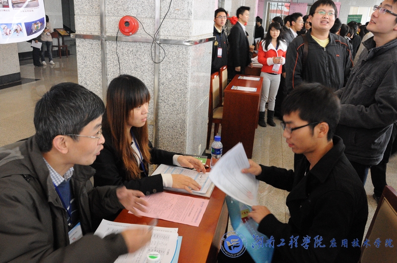 见面会还未开始,应聘者便手持简历早早来到现场,积极与招聘人员进行交流。招聘人员对我院准毕业生的个人素质和综合能力给予了充分的肯定,并告诫同学们一定要做好人生的定位,有目标才有方向的择业。