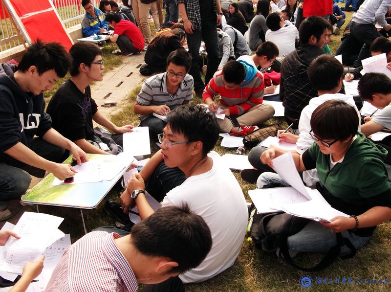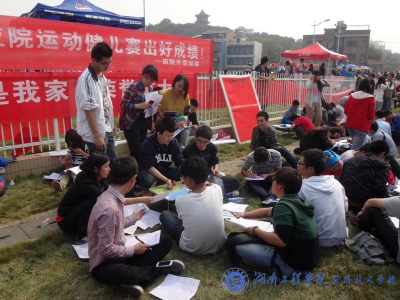 赛场边,我院特别设了服务站点,为运动员提供休息的场所。同时体育部的干事一直忙碌于赛前赛后:为运动员们发放参赛号码牌,安排运动员及时前往参赛点登记,负责告知运动员有关比赛项目的具体事宜并给他们以鼓励,最后还负责总结我院健儿的成绩。而我们院的领导、老师及其他团总支学生会成员也都奉献着自己的力量和尽着自己的责任:办公室和宣传广策中心负责撰写广播稿,用文字的力量去为健儿们加油,增加他们的信心;学习部和文娱部则负责为运动员摇旗呐喊;纪检部负责维持现场秩序;心理咨询中心为运动员进行心理疏导,调整运动员赛前的心态,让运动员们不管是赛前还是赛后,都有一个愉悦舒畅的心情去面对接下来的挑战;而赛后,女生部为运动员送来水和饮品,为运动员补充能量。学生新闻通讯社的成员则拿着笔记本和相机奔赴于赛场的各个角落,为运动健儿们记下每一个精彩的瞬间和每一项骄人的成绩,及时并全面地将赛场信息采编回来,告知那些错过比赛的同学:在我院新闻通讯社,你一样可以看到精彩重现。