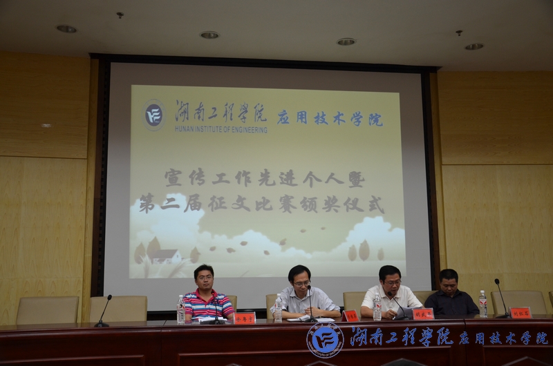 9月20日下午13:00,应用技术学院2011—2012年度宣传工作先进个人暨第二届征文比赛颁奖大会在图书馆第二报告厅隆重举行。院党总支书记彭栋梁、副院长胡武平、党总支副书记徐粤宇、学生工作办公室主任刘红石出席,学生会主席姜苗苗、团总支副书记张垄水、新闻通讯社社长李威、及团总支、学生会各部门干部、新闻通讯社全体成员参加了本次大会。大会由新闻通讯社副社长申梦芸主持。