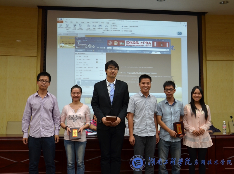 新闻通讯社是我院对内对外宣传报道的主力军,为对在上学期的工作中表现突出的干部及干事给予褒奖,胡武平宣读了《应用技术学院党总支关于表彰宣传工作先进个人的决定》,李威、申梦芸、刘新宇等22名同学荣获应用技术学院2011年—2012年度宣传工作先进个人的称号。刘红石为获奖同学颁奖。