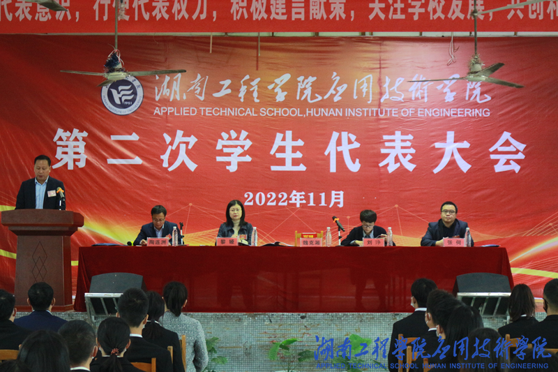 魏克湘发表重要讲话。他说,应用技术学院学生会作出了大量卓有成效的工作,为学生成长成才和学校改革发展作出了积极贡献,思想引领效果突出,校园文化蓬勃发展,参与校园民主管理卓有成效。魏克湘对学生会提出三点希望:一是希望学生代表大会特别是各级学生会组织立足“强基层、增活力、促改革、谋发展”,全面深化推进学生会工作改革。二是希望全体学生代表、全校学生干部树立远大理想,勇于担当,在工作中锤炼自我。三是希望同学们练就过硬本领,躬身社会实践,用专业所长为社会服务、为祖国和人民做贡献。