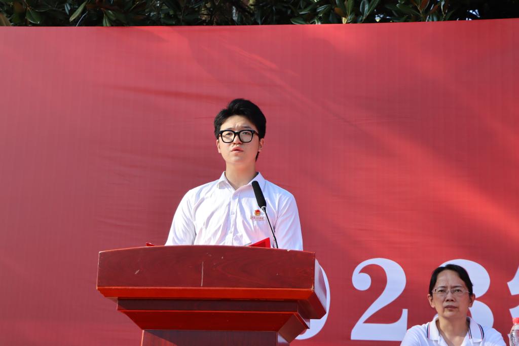 “请各位领导、老师放心,我们定不负师长亲友嘱托,为湖工更好的明天,更好的自己努力着、奋斗着。”新生代表、经济学2382班唐澧子许下铮铮誓言。