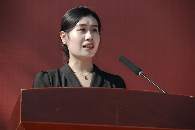 “希望你们自立、自律、自信、自强,愿你们用心感受大学生活的美好与宝贵,感受学海的博大与浩瀚。锲而不舍、敢为人先、勇毅前行!”教师代表、西南政法大学法学硕士蒋卓娅发言。蒋卓娅从大学亲身经历出发,为同学们播散迷雾,祝愿学子能够学好知识、学好本领、学会做人。